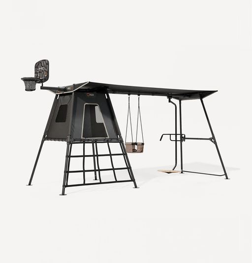 VulyM Quest 2 is the perfect backyard all-rounder that balances playset footprint with room for play equipment and accessories. Click on - click off ac...